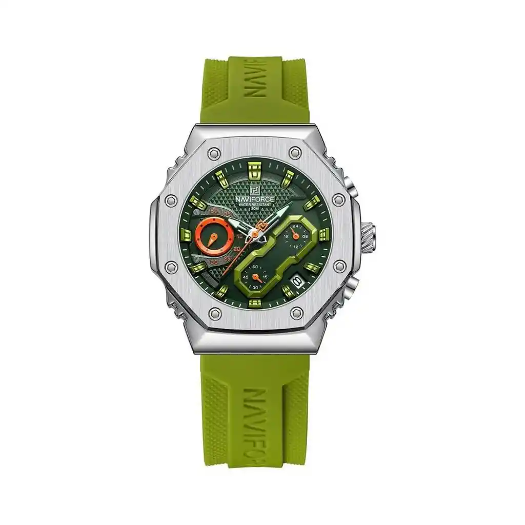 Descubre la elegancia y sofisticación de los relojes **Naviforce**, diseñados para quienes buscan estilo, calidad y funcionalidad en un solo accesorio. Con materiales de primera y un diseño innovador, este reloj no solo complementa tu look, sino que también resalta tu personalidad con un toque de lujo y distinción. Su correa elegante se adapta perfectamente a cualquier ocasión, permitiéndote lucir impecable en todo momento. Más que un simple reloj, **Naviforce** es sinónimo de prestigio y modernidad, ideal para quienes desean destacar con cada detalle. ¡Hazlo tuyo y eleva tu estilo al siguiente nivel! /// El reloj incluye su estuche original y tarjeta de garantía. /// Ficha Técnica Pantalla Análoga Resistencia al agua de 3ATM (solo exposición accidental al agua No ducha, No se puede sumergir, No usar en actividades acuáticas). Tipo de cierre: Hebilla Material de la caja: Aleación de Zinc Grosor de esfera: 1.5 cm Ancho correa: 1.8 cm Diámetro: 3.8 cm Material de la correa banda: Goma Longitud de La correa: 25 cm ( Ajustable ) Peso neto: 78 g Términos de garantía: Para defectos de fábrica o solicitudes de retracto, es importante revisar el producto inmediatamente al recibirlo y antes de usarlo, ya que no aplicará garantía una vez utilizado. Se dispone de un máximo de 5 días para reportar defectos de fábrica, como piezas faltantes o rotas. En el caso de maquinaria, la garantía cubre tres meses para garantizar su correcto funcionamiento. Para efectuar una devolución, el producto debe ser devuelto en su empaque original, en buen estado, con todos los documentos y partes completas y sin daños.