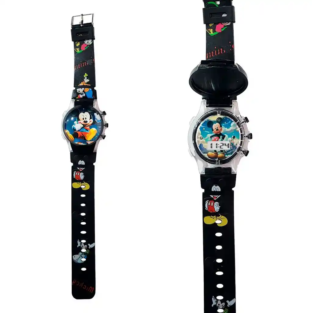 Este reloj digital para niños está diseñado con colores brillantes y cuenta con un personaje favorito en la pantalla. Además de mostrar la hora, el reloj también tiene luces y sonidos que se activan cuando se presionan los botones laterales. Los sonidos son divertidos y atractivos para los niños, lo que les ayuda a aprender y reconocer los números del reloj. Con este reloj, los niños pueden aprender a leer la hora mientras se divierten con su personaje favorito. Es un accesorio perfecto para cualquier niño que esté aprendiendo a leer la hora y quiera hacerlo con estilo. Ficha Técnica: Materiales: Silicona y Plástico PVC Longitud: 22.5 cm Ancho de la correa: 1.6 cm Diámetro: 3.5 cm Edad recomendada: + 3 años Términos de garantía: _Para defectos de fábrica o retractos: _Por favor revise el producto apenas lo reciba y antes de usarlo. No aplican ley de retracto o defectos de fábrica luego de usar el producto. Se manejan máximo 5 días para reportar defectos de fábrica (por ejemplo, piezas faltantes, rotas, etc). En cuanto a maquinaria se da tres meses de garantía, es decir el buen funcionamiento del producto. Para hacer efectiva la devolución el producto debe devolverse con el empaque original, el cual debe estar en buen estado, incluir todos los documentos y las partes completas y sin daños. Los cuidados y recomendaciones para mantener un producto en buen estado son los siguientes: No aplicarle perfumes ni cremas directamente, no mojarlos, no dejarlos caer y procurar limpiarlos para retirar suciedad.
