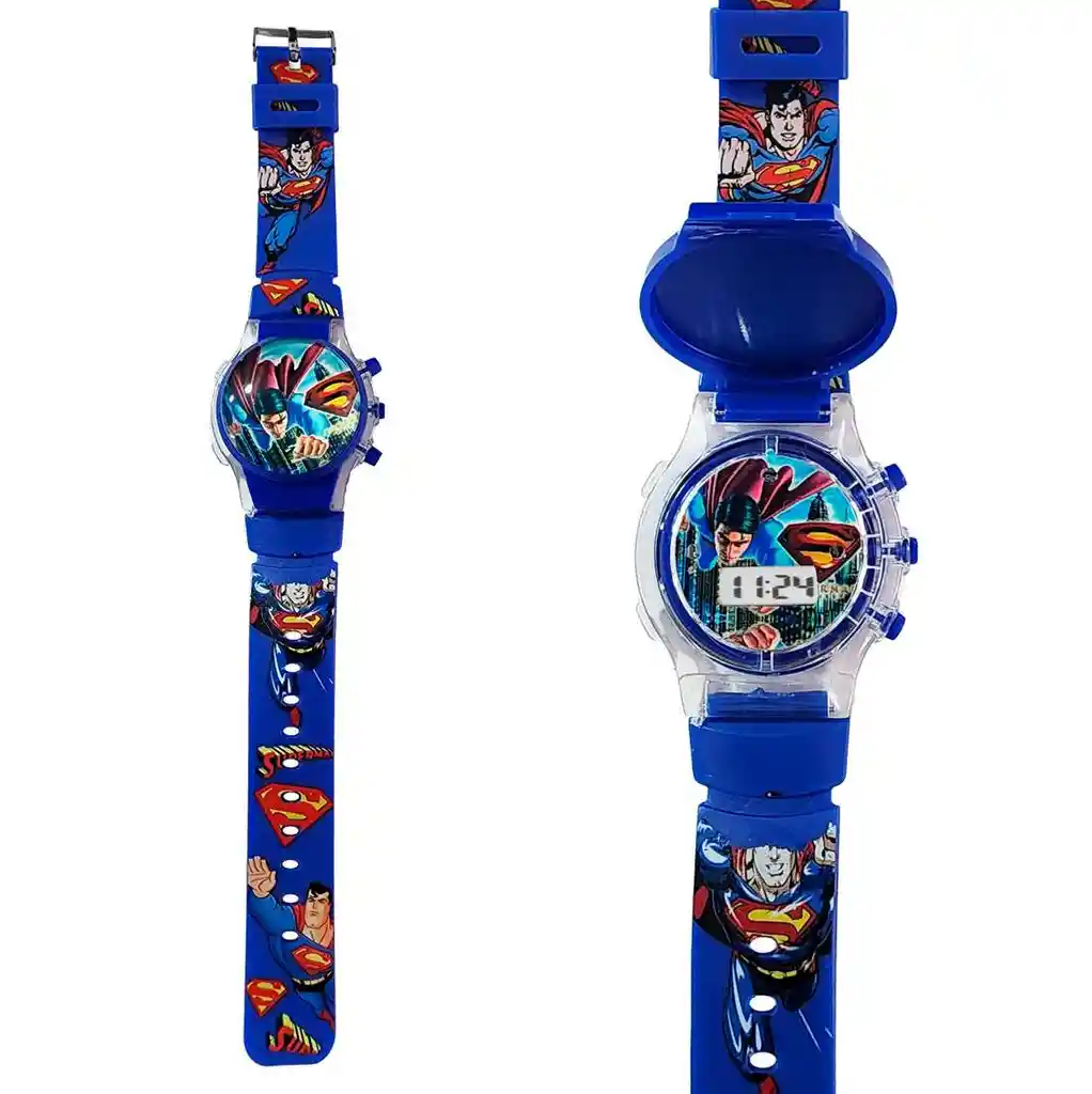 Este reloj digital para niños está diseñado con colores brillantes y cuenta con un personaje favorito en la pantalla. Además de mostrar la hora, el reloj también tiene luces y sonidos que se activan cuando se presionan los botones laterales. Los sonidos son divertidos y atractivos para los niños, lo que les ayuda a aprender y reconocer los números del reloj. Con este reloj, los niños pueden aprender a leer la hora mientras se divierten con su personaje favorito. Es un accesorio perfecto para cualquier niño que esté aprendiendo a leer la hora y quiera hacerlo con estilo. Ficha Técnica: Materiales: Silicona y Plástico PVC Longitud: 22.5 cm Ancho de la correa: 1.6 cm Diámetro: 3.5 cm Edad recomendada: + 3 años Términos de garantía: _Para defectos de fábrica o retractos: _Por favor revise el producto apenas lo reciba y antes de usarlo. No aplican ley de retracto o defectos de fábrica luego de usar el producto. Se manejan máximo 5 días para reportar defectos de fábrica (por ejemplo, piezas faltantes, rotas, etc). En cuanto a maquinaria se da tres meses de garantía, es decir el buen funcionamiento del producto. Para hacer efectiva la devolución el producto debe devolverse con el empaque original, el cual debe estar en buen estado, incluir todos los documentos y las partes completas y sin daños. Los cuidados y recomendaciones para mantener un producto en buen estado son los siguientes: No aplicarle perfumes ni cremas directamente, no mojarlos, no dejarlos caer y procurar limpiarlos para retirar suciedad.