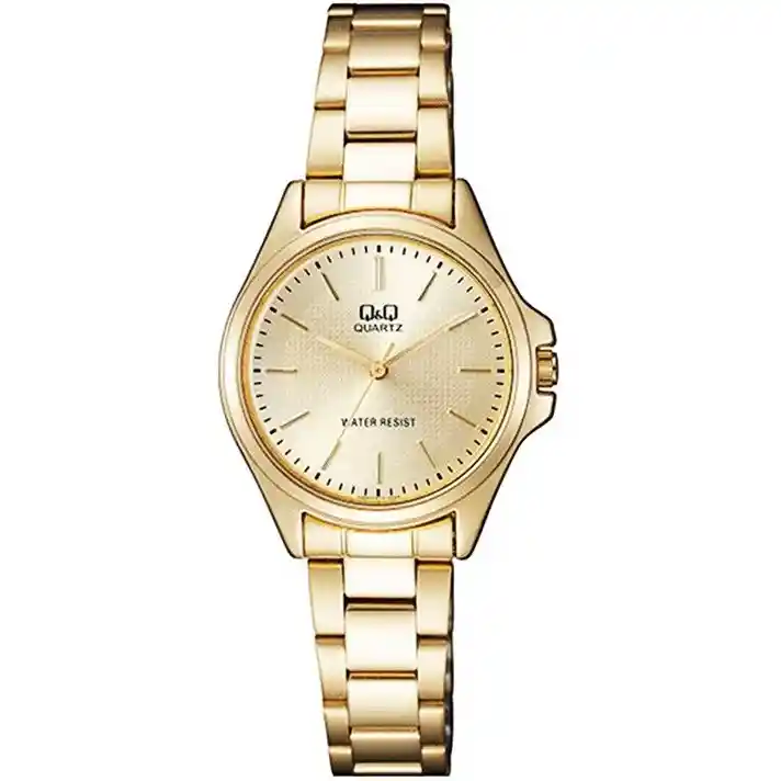 Este reloj QQ combina estilo y resistencia. Con correa de acero inoxidable y resistencia al agua, es perfecto para cualquier ocasión, ofreciendo durabilidad y elegancia en un diseño moderno y funcional. /// El reloj incluye estuche y bateria de repuesto /// Ficha Técnica: Tipo de Maquinaria: Japonesa Diámetro de la esfera: 3.3 cm Grosor de la Esfera: 0.7 cm Ancho de la correa: 1.2 cm Longitud del reloj: 22 cm Resistencia al agua : si Material de la correa: Acero Inoxidable Material de la esfera: Aleación Metal Peso: 50 gr Genero : Dama _Para defectos de fábrica o retractos: _Por favor revise el producto apenas lo reciba y antes de usarlo. No aplican ley de retracto o defectos de fábrica luego de usar el producto. Se manejan máximo 5 días para reportar defectos de fábrica (por ejemplo, piezas faltantes, rotas, etc). En cuanto a maquinaria se da tres meses de garantía, es decir el buen funcionamiento del producto. Para hacer efectiva la devolución el producto debe devolverse con el empaque original, el cual debe estar en buen estado, incluir todos los documentos y las partes completas y sin daños Garantía del vendedor: 3 meses