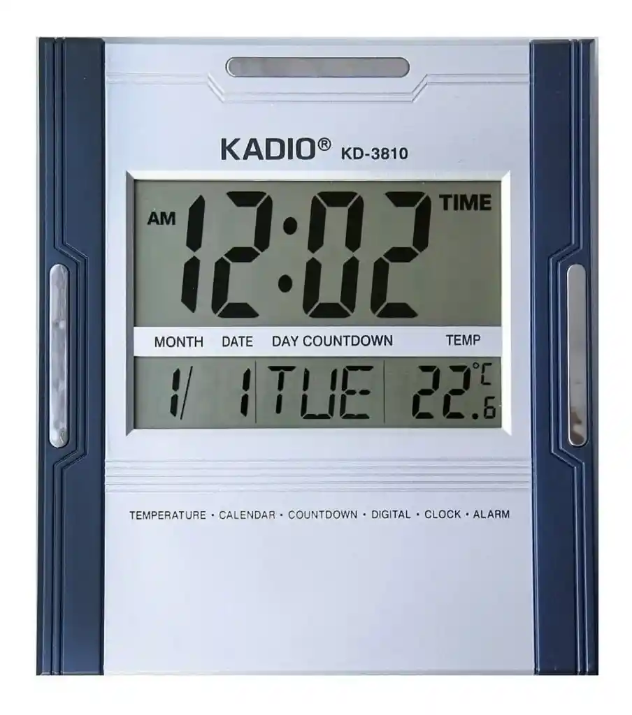 🕓 Reloj de Pared Digital Kadio KD-3810N – Termómetro, Timer, Alarma y Calendario 🌟 🌙 Descripción: Mantén tu espacio siempre a tiempo con el Reloj de Pared Digital Kadio KD-3810N 🏠. Su diseño moderno y su amplia pantalla lo hacen ideal para el hogar, oficina o negocio, mostrando toda la información que necesitas de un vistazo. ⚙️ Características: 🔹 Pantalla digital grande y clara para fácil lectura. 🔹 Muestra hora, fecha y día de la semana 📅. 🔹 Función de alarma y temporizador (timer) ⏰. 🔹 Incluye termómetro para visualizar la temperatura ambiente 🌡️. 🔹 Diseño elegante y moderno, ideal para pared o escritorio. 🔹 Fácil de colgar o colocar en superficie plana. 🔹 Funciona con pilas (no incluidas). 🔋 ✨ ¡Un reloj completo, funcional y moderno para mantenerte organizado todos los días! 💫