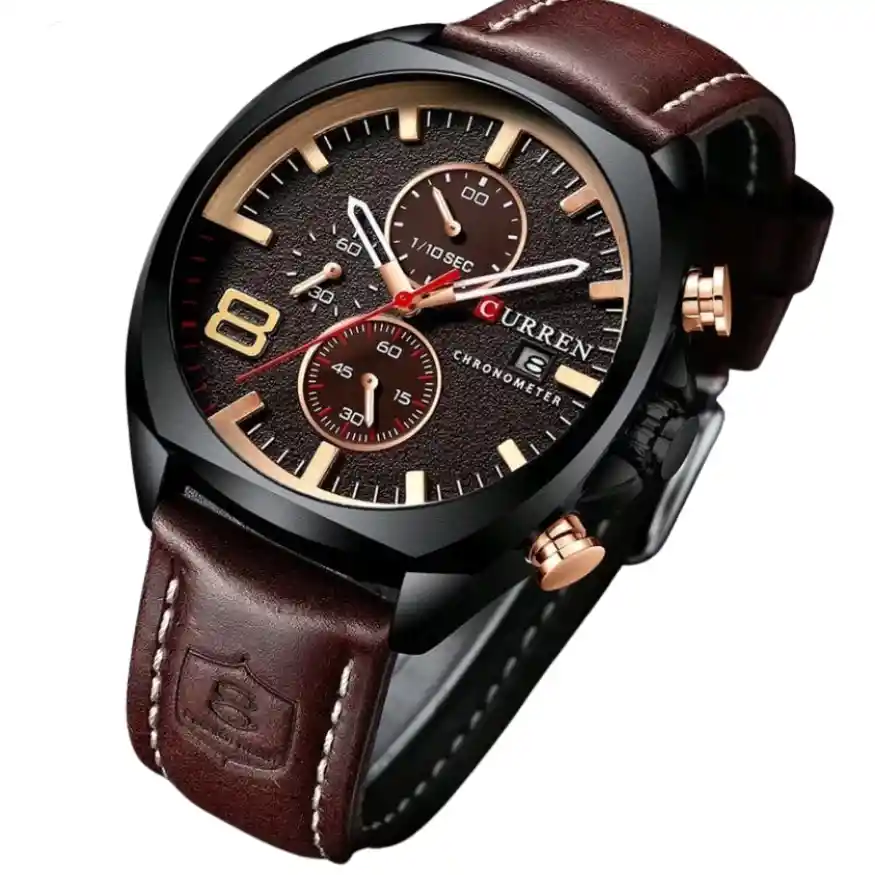 Este Reloj de Pulso Curren Original es mucho más que un accesorio; es una declaración de estilo y un aliado funcional que se adapta a hombres con gustos exigentes. Con un diseño analógico, cronógrafo y calendario funcional, este reloj aúna lo mejor de la moda y la utilidad. Características Destacadas: Diseño Clásico y Sofisticado: El reloj cuenta con una esfera de elegante diseño analógico y una correa de cuero genuino que le confieren un toque de sofisticación atemporal. Es ideal para complementar tu estilo en cualquier ocasión. Función Cronógrafo: El cronógrafo te permite medir con precisión el tiempo. Calendario Funcional: Mantén un registro de las fechas más importantes con la función de calendario. Nunca perderás una cita u ocasión especial con este reloj en tu muñeca. Materiales de Alta Calidad: La marca Curren es sinónimo de calidad. Este reloj está construido con materiales duraderos que resisten el uso diario y el paso del tiempo. Un Compañero de Estilo y Funcionalidad: Este Reloj de Pulso Curren Original es el equilibrio perfecto entre estilo y funcionalidad. Ya sea que estés en una reunión de negocios, practicando deportes o disfrutando de tu tiempo libre, este reloj se adapta a todas las facetas de tu vida. Cada vez que mires la hora en este reloj, sentirás la satisfacción de poseer una pieza de calidad que refleja tu estilo y personalidad. Además, su versatilidad te permitirá lucirlo con trajes formales o atuendos más relajados. No esperes más para elevar tu estilo y funcionalidad. Adquiere este Reloj de Pulso Curren Original y lleva un toque de elegancia a tu muñeca mientras mantienes el control del tiempo y las fechas importantes en tu vida. ¡No te quedes sin él!