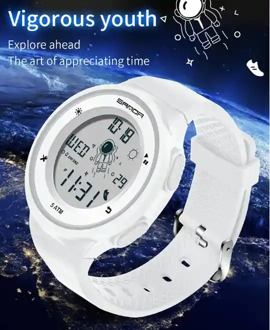 ¡Eleva tu estilo y funcionalidad con el Reloj de Pulso Digital Sanda para Mujer! Este impresionante reloj astronómico, diseñado especialmente para mujeres con un gusto impecable, combina un diseño moderno y elegante con una durabilidad excepcional. Características destacadas: Diseño Astronauta Calendario: El reloj Sanda para mujer presenta un diseño inspirado en el espacio que te transportará a otro mundo. Su pantalla digital muestra la hora, fecha y día de la semana con claridad y precisión. Pulso en Goma de Alta Resistencia: La correa de goma de alta resistencia es cómoda de llevar y resistente al desgaste. Ideal para mujeres activas que buscan un reloj que pueda soportar su ajetreada rutina diaria. Funciones Versátiles: Este reloj no solo es una declaración de moda, sino que también es altamente funcional. Cuenta con alarmas, cronómetro. Durabilidad Garantizada: La calidad de construcción de Sanda garantiza que este reloj te acompañará durante años, convirtiéndolo en una inversión inteligente. Ya sea que estés buscando un reloj para lucir elegante en la oficina, mantener un seguimiento preciso de tus actividades diarias o simplemente desees agregar un toque de sofisticación a tu atuendo, el Reloj de Pulso Digital Sanda para Mujer es la elección perfecta. ¡Haz una declaración de estilo y potencia con este reloj que combina moda y funcionalidad a la perfección!