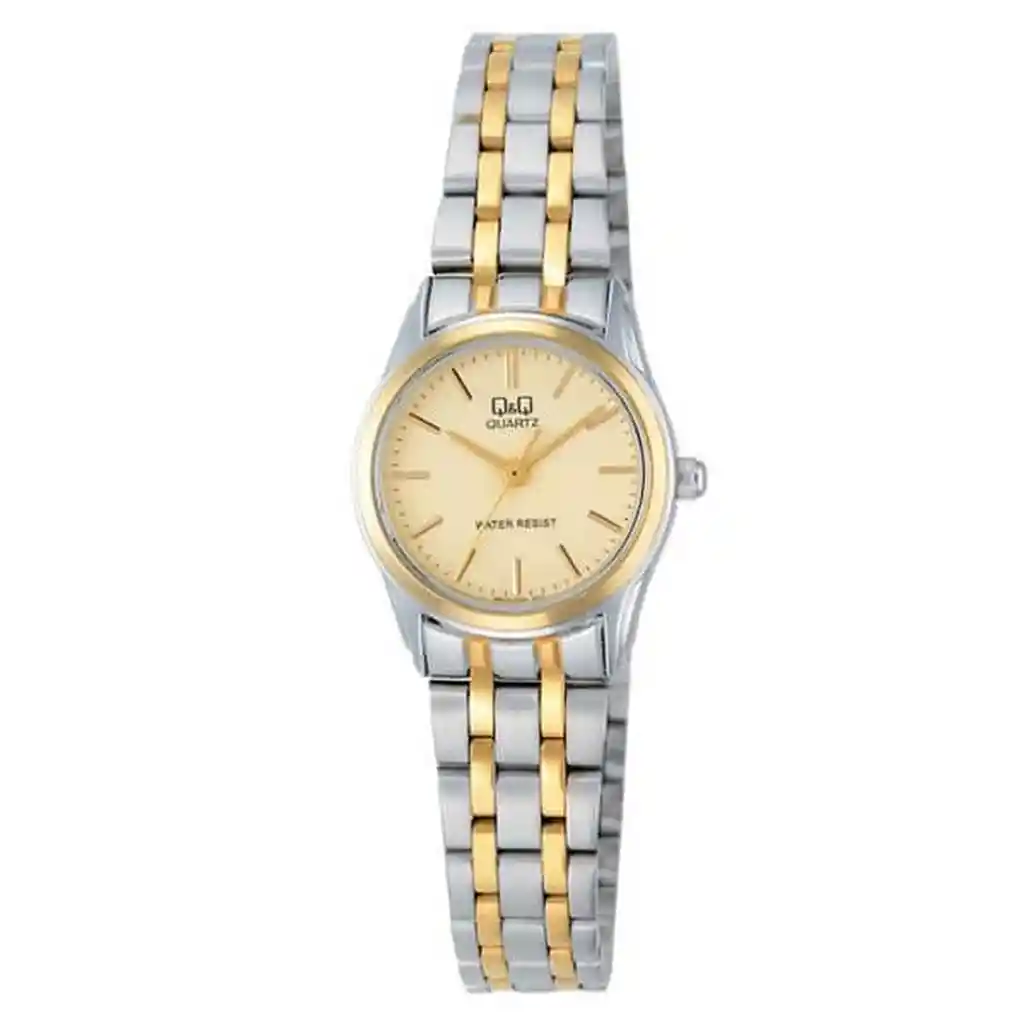 Este reloj QQ combina estilo y resistencia. Con correa de acero inoxidable y resistencia al agua, es perfecto para cualquier ocasión, ofreciendo durabilidad y elegancia en un diseño moderno y funcional. /// El reloj incluye estuche y bateria de repuesto /// Ficha Técnica: Tipo de Maquinaria: Japonesa Diámetro de la esfera: 3.4 cm Grosor de la Esfera: 0.7 cm Ancho de la correa: 1.1 cm Longitud del reloj: 22 cm Resistencia al agua : si Material de la correa: Acero Inoxidable Material de la esfera: Aleación Metal Peso: 40 gr Genero : Dama _Para defectos de fábrica o retractos: _Por favor revise el producto apenas lo reciba y antes de usarlo. No aplican ley de retracto o defectos de fábrica luego de usar el producto. Se manejan máximo 5 días para reportar defectos de fábrica (por ejemplo, piezas faltantes, rotas, etc). En cuanto a maquinaria se da tres meses de garantía, es decir el buen funcionamiento del producto. Para hacer efectiva la devolución el producto debe devolverse con el empaque original, el cual debe estar en buen estado, incluir todos los documentos y las partes completas y sin daños Garantía del vendedor: 3 meses
