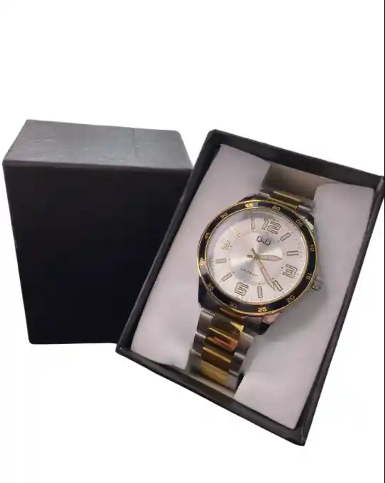 RELOJ Replica NEGRO CON DORADO, Y CENTRO COLOR BLANCO PARA HOMBRE MARCA QYQ REPLICA