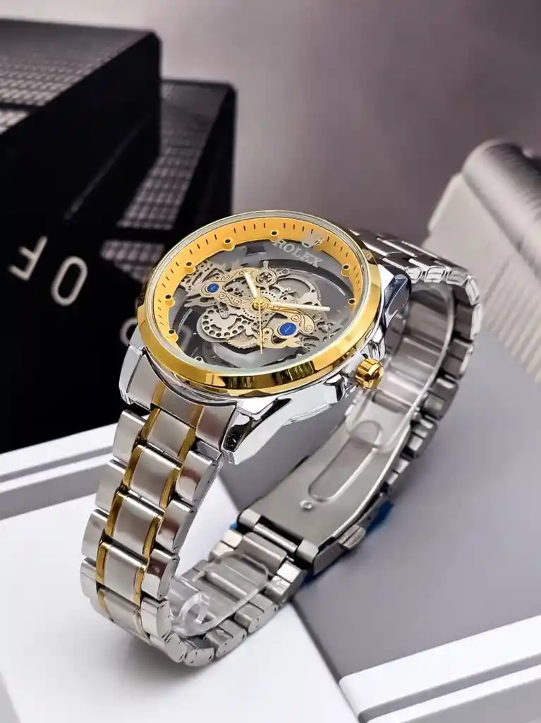 Reloj Rolex Tapa de Cristal Plateado dorado / Genérico 🚩 unisex 🚩Manilla metálica 🚩broche de doble seguridad 🚩 Tapa de cristal 🚩cristal mineral