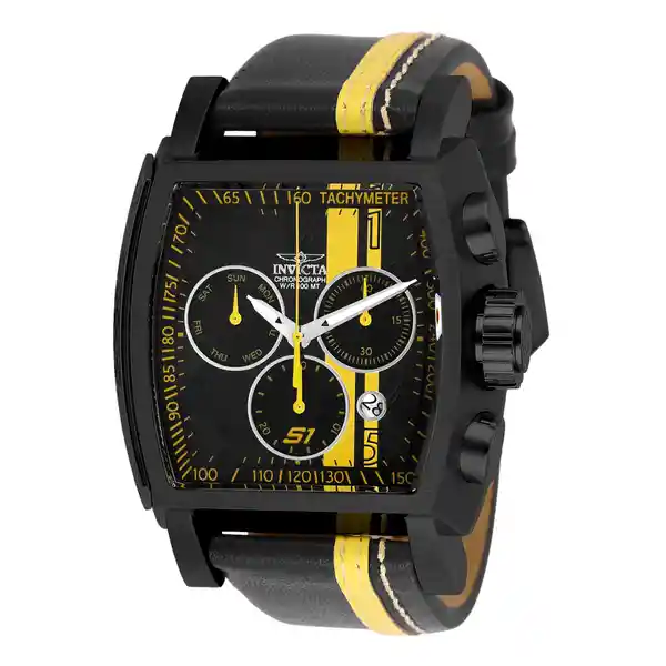 S1 Rally Para Hombre Tamaño de la Caja 48 mm de Acero Inoxidable Tamaño Del Pulso 210 mm de Cuero Color Amarillo Resistencia al Agua 100 Metros.