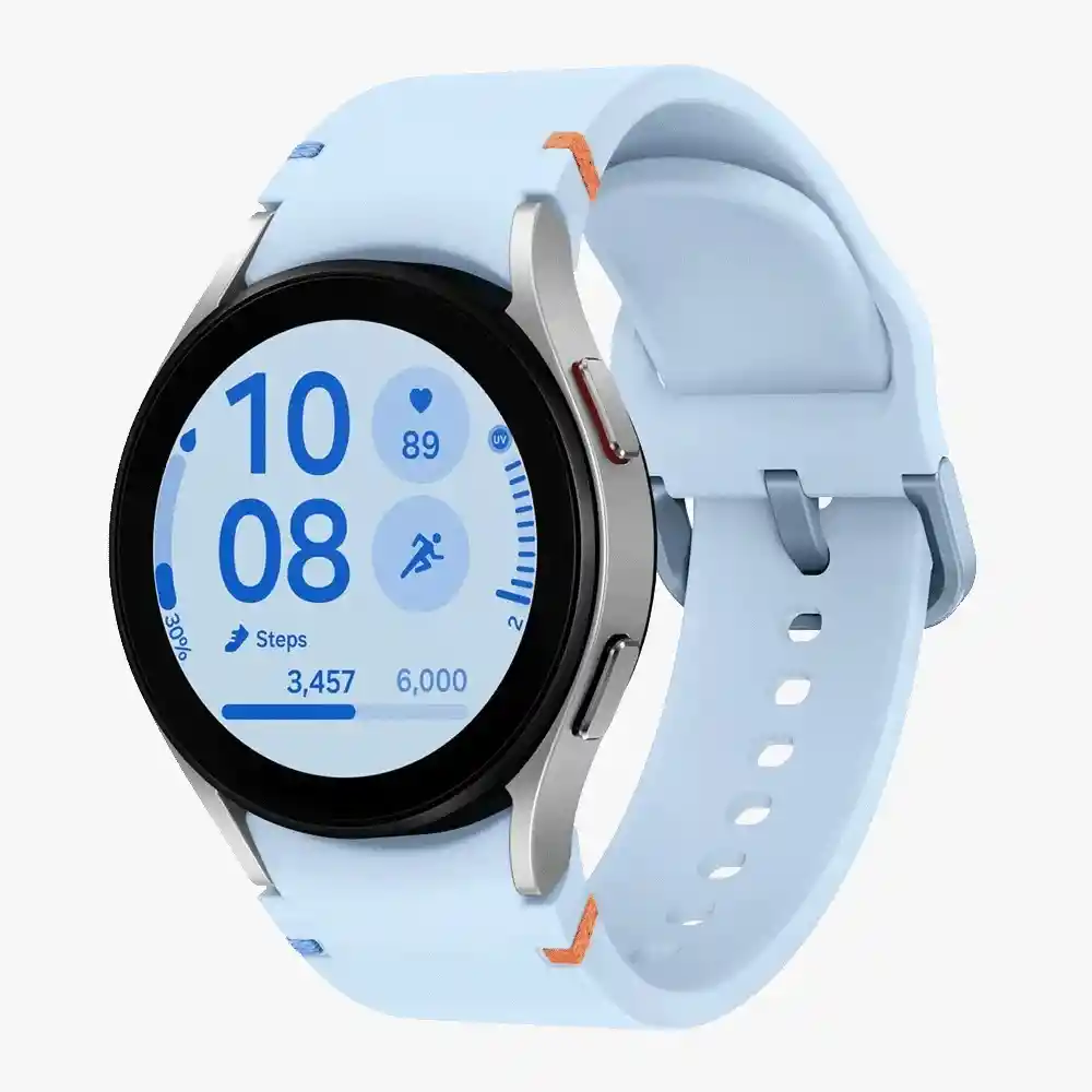 Reloj inteligente de Samsung con diseño compacto y elegante, pensado para el uso diario y el seguimiento integral de la salud y la actividad física. Incorpora pantalla Super AMOLED de alta definición, sistema Wear OS con integración al ecosistema Samsung, múltiples sensores de salud y una construcción resistente al agua, ideal tanto para entrenamiento como para actividades cotidianas. El color azul claro le da un acabado moderno y ligero. Especificaciones destacadas Tamaño de caja: 40 mm Dimensiones: 39.3 × 40.4 × 9.8 mm Peso: aproximadamente 26.6 g (sin correa) Pantalla: 1.2 pulgadas Super AMOLED Resolución: 396 × 396 píxeles Sistema operativo: Wear OS con One UI Watch Procesador: Exynos W920 (doble núcleo) Memoria RAM: 1.5 GB Almacenamiento interno: 16 GB Conectividad: Bluetooth 5.3, Wi-Fi, GPS, NFC Sensores: frecuencia cardíaca óptica, ECG, SpO₂, acelerómetro, giroscopio, barómetro, sensor geomagnético y luz ambiental Resistencia al agua: 5 ATM Batería: 247 mAh Compatibilidad: teléfonos Android