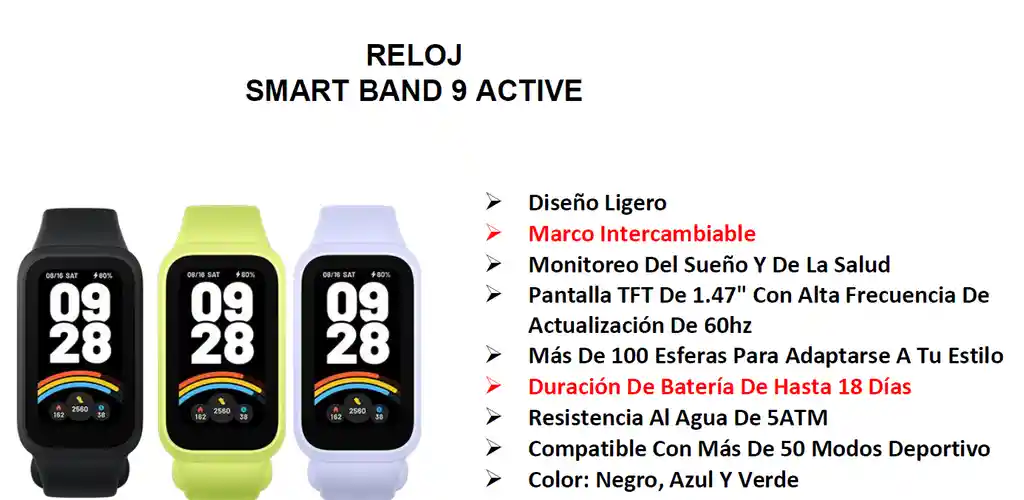 Diseño Ligero Marco Intercambiable Monitoreo Del Sueño Y De La Salud Pantalla TFT De 1.47" Con Alta Frecuencia De Actualización De 60hz Más De 100 Esferas Para Adaptarse A Tu Estilo Duración De Batería De Hasta 18 Días Resistencia Al Agua De 5ATM Compatible Con Más De 50 Modos Deportivo Color: Negro, Azul Y Verde EXPOTECNOLOGIA 3505945136