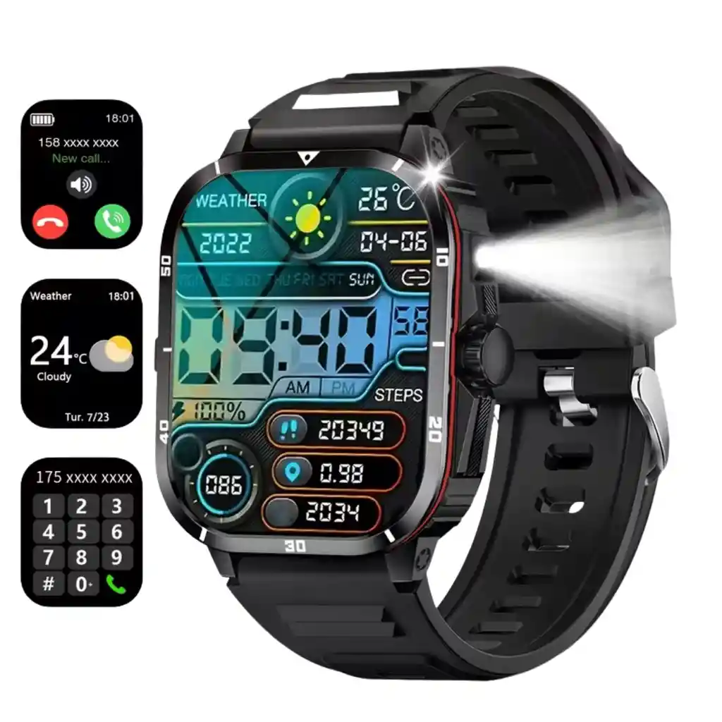 ⌚ Smartwatch Deportivo Multifuncional – Tecnología que te acompaña en cada momento Este reloj inteligente de diseño moderno y resistente combina estilo, conectividad y funciones avanzadas para ofrecerte una experiencia completa, tanto en tu rutina diaria como en tus actividades deportivas. 🔥 Principales características: - Pantalla digital de alta definición con interfaz intuitiva y visualización clara de datos como clima, fecha, hora, pasos, calorías y más. - Llamadas y mensajes en tiempo real: recibe notificaciones, contesta llamadas y visualiza mensajes directamente desde tu muñeca. - Linterna integrada: ideal para situaciones de poca luz o actividades al aire libre. - Control remoto de cámara: captura momentos especiales con solo levantar la mano. - Diseño robusto y elegante: correa cómoda y carcasa resistente, perfecta para uso diario o deportivo. 🧘 Funciones adicionales: - Monitor de ritmo cardíaco y pasos - Seguimiento de calorías y distancia recorrida - Información meteorológica actualizada - Agenda, alarma, temporizador y recordatorios - Asistente de voz - Marcación rápida y registro de llamadas Este smartwatch no solo te mantiene conectado, sino que también te ayuda a cuidar tu salud, organizar tu día y capturar tus mejores momentos. ¡Una herramienta versátil que transforma tu muñeca en un centro de control inteligente!