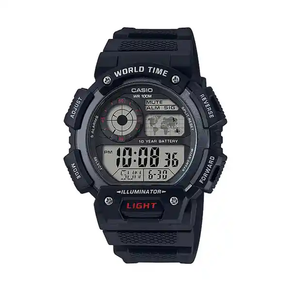 Reloj Casio Ae_1400Wh_1Av Youth Para Hombre Tamaño de la Caja 48.4 mm de Resina Tamaño Del Pulso de Resina Color Negro Resistencia al Agua 100 Metros.