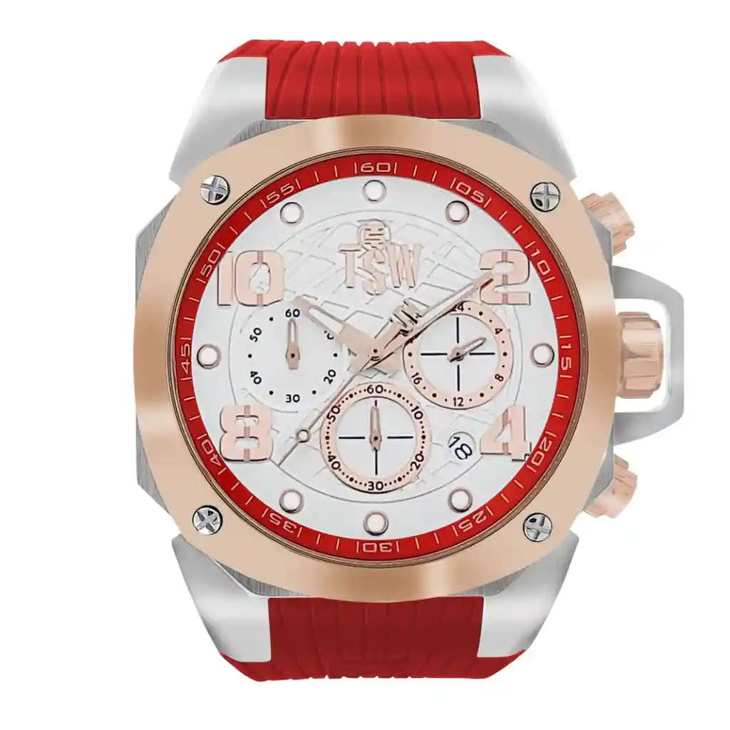 Género: Mujer Tamaño de la caja: 44 mm Color del tablero: Blanco Material de la caja: Acero inoxidable Color de la caja: Acero , Oro rosa Material del cristal: Cristal antirreflectante Zafiro Revestimiento Material del pulso: Silicona Color del Pulso: Rojo Tipo de Hebilla: Hebilla Resistencia al agua: 10 ATM