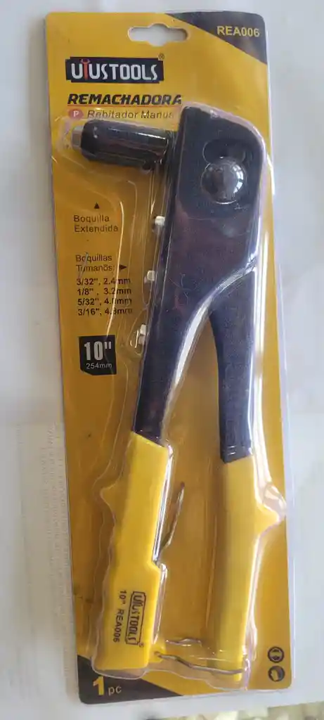 Descripción Ref REA0O6 Trabajo Profesional Remache pop 4 boquillas * 3/32" = 2.4MM * 1/8" = 3.2MM * 5/32" = 4.0MM * 3/16"= 4.8MM 10" Incluye llave