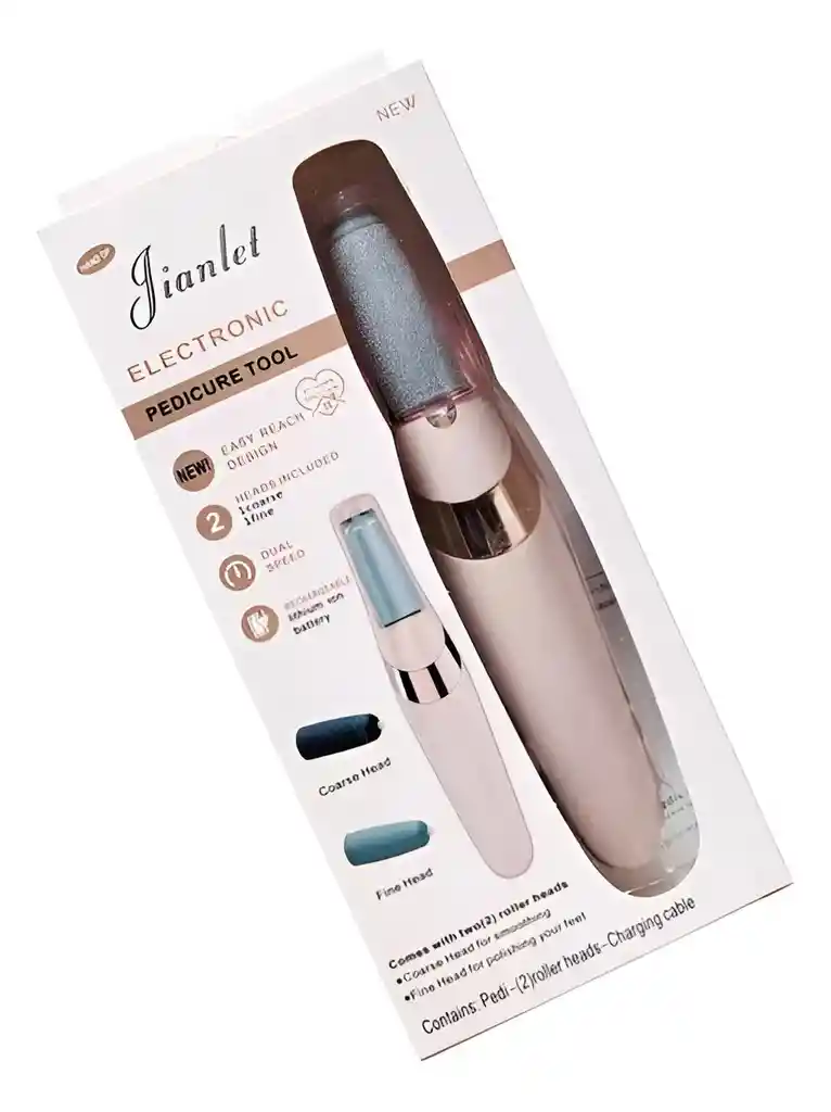 El removedor eléctrico de callos es un dispositivo práctico y moderno diseñado para eliminar durezas, callos y piel reseca de pies y talones de forma rápida, segura y sin esfuerzo. Su diseño ergonómico permite un manejo cómodo, ayudando a dejar los pies suaves, lisos y con apariencia cuidada desde la primera aplicación.Ideal para uso en casa, evitando visitas frecuentes a salones de pedicuría.Funcionamiento Cuenta con un rodillo giratorio abrasivo que elimina gradualmente la piel muerta. Se enciende con un botón deslizante, fácil de usar. Al entrar en contacto con la piel, el rodillo gira suavemente, desgastando las durezas sin causar dolor. Puede usarse en talones, plantas y zonas con callos. Modo de uso: Asegura que el pie esté limpio y seco. Enciende el dispositivo. Desliza suavemente sobre la zona deseada sin presionar demasiado. Limpia el exceso de piel y aplica crema hidratante al finalizar.Medidas aproximadas del producto Largo: 16 – 18 cm Ancho: 3 – 4 cm Grosor: 3 cm aprox. Tamaño del rodillo: 4 – 5 cmCuidados y recomendaciones Usar únicamente sobre piel seca (no mojar el aparato). No presionar con fuerza para evitar irritaciones. No usar sobre heridas, piel inflamada o irritada. Limpiar el rodillo después de cada uso con un cepillo seco. Mantener fuera del alcance de los niños. Guardar en un lugar seco y limpio. PRODUCTO IMPOSTADO
