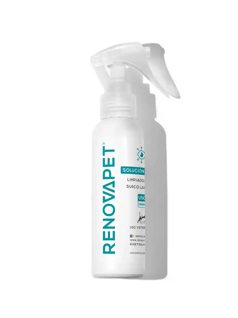 Limpiador de manchas del surco lagrimal para mascotas Renovapet Solución Tópica Limpiadora Del Surco Lagrimal. 120ml. No. Reg. ICA: 11260-CV SOLUCIÓN TÓPICA LIMPIADORA DEL SURCO LAGRIMAL: Solución tópica para remover manchas ocasionadas por las lágrimas en la piel y el pelo de perros y gatos de todas las razas. FORMA COSMÉTICA: Líquida. ESPECIES DE DESTINO: Para perros y gatos de todas las razas a partir de las ocho (8) semanas de edad. MODO DE USO: Aplicar el producto en cantidad suficiente sobre una gasa, paño o toalla y frotar con suaves masajes para limpiar el surco lagrimal. No requiere enjuague. Uso Diario. CONDICIONES DE ALMACENAMIENTO: Almacenar cerrado en su envase original a una temperatura inferior a 30°C. COMPONENTES: Cocamidopropyl betaine, Lauryl Glucoside, Phenoxyethanol (and) ethylhexylglycerin, Vitis Vinifera extract, Aqua. PRECAUCIONES Y ADVERTENCIAS: En caso de hipersensibilidad a los componentes detenga su uso. Manténgase fuera del alcance de los niños y animales domésticos.