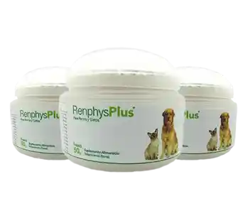 Renphys Plus es es un suplemento biotecnológico indicado en el tratamiento de la enfermedad renal para perros y gatos, disminuye el BUN y la Creatinina en 14 días. Renphys Plus actúa en forma sinérgica en Dos niveles: 1: Control enzimático de la fibrosis del parénquima renal. 2: Atrapamiento del fosforo rompiendo el ciclo de la hormona paratiroidea.