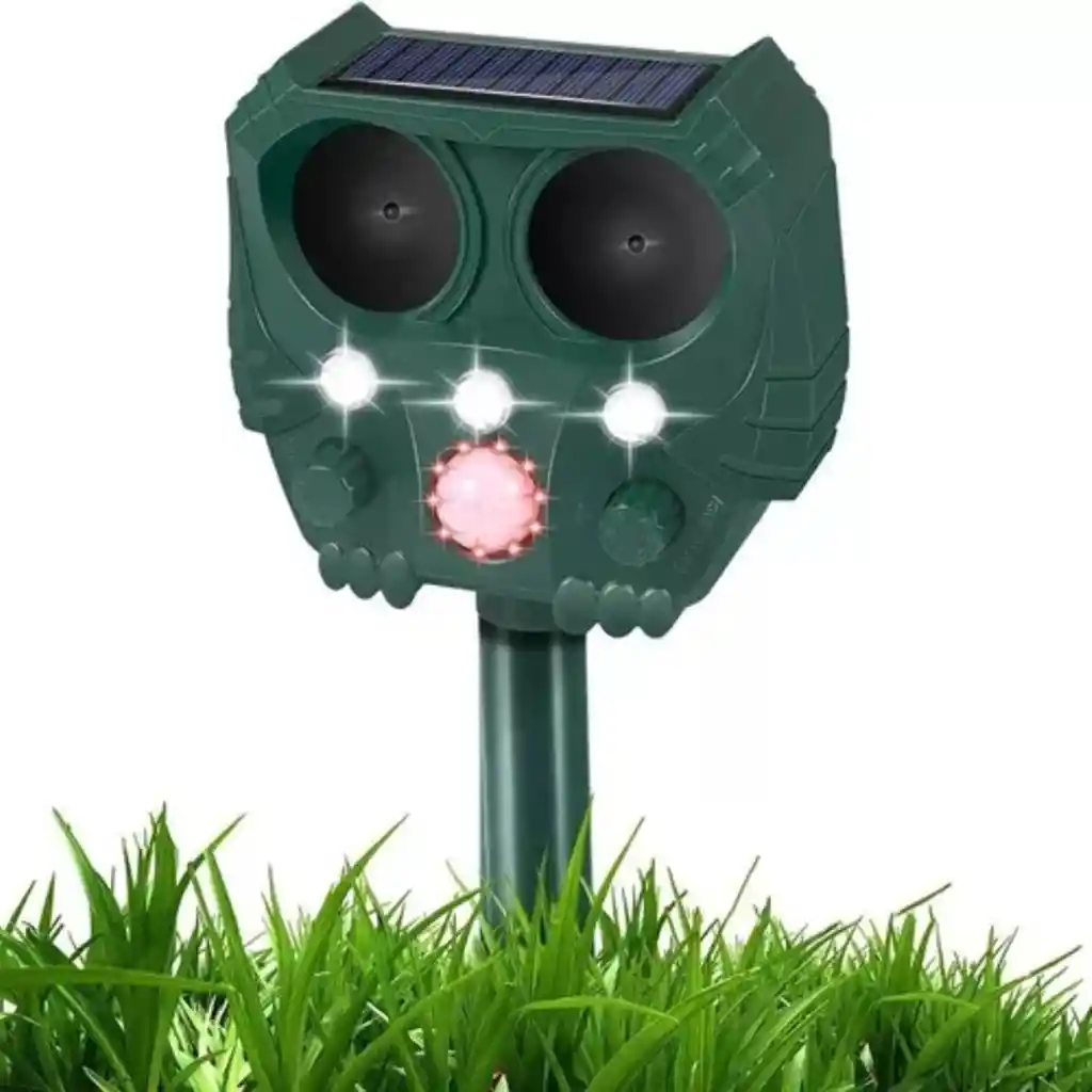 Bienvenido(a) Ahuyentador Automático Solar para Animales Presentamos nuestro ahuyentador automático solar, ideal para mantener alejados a una amplia variedad de animales como perros, gatos, aves, zorros, serpientes, ratas y más. Ajuste el dispositivo para repeler el tipo de animal deseado. El sensor infrarrojo detecta el movimiento y emite un ultrasonido que ahuyenta a los animales. Este dispositivo es ideal para uso en exteriores, resistente a las inclemencias del tiempo y cuenta con una batería interna recargable por energía solar o cable. Es práctico, fácil de instalar, silencioso y muy útil para jardines, fincas, patios y cultivos. Producto disponible para entrega inmediata Características: Energía: 4 baterías internas AA Ni-Mh recargables por vía solar o cable Indicador: Luz roja que indica que la unidad está activa Corriente de carga: 250mA, 5V, 500mA a 1A Rango del sensor infrarrojo: 110 grados Rango de detección: 6 a 8 metros Rango de emisión de ultrasonido: 170 grados en todas las direcciones Material: Plástico ABS Celda solar: Polisilicio, tamaño 79.5 x 43.50 mm Capacidad de la batería: 800 mAh Ajustes: Dos botones para sensibilidad y frecuencia según el animal a repeler Contenido del paquete: Un repelente ultrasónico solar Un cable de carga Un soporte de 4 partes Un manual de uso en inglés