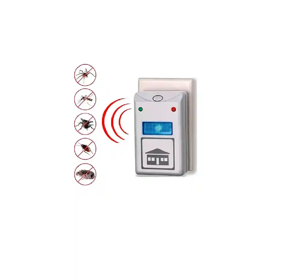 • Es aplicable para repeler cucarachas, insectos, parásitos, ratones. • Frecuencia ultrasónica repulsiva: 22 - 65KHz • Rango efectivo: 80 - 120sqm • No tóxico • Ecológico, respetuoso con el medio ambiente • Seguro y sin olor • Fuente de alimentación - AC 90V - 250V 50 - 60Hz • Potencia es 5 - 6W • Material: ABS • Peso del paquete: 0.1 kg • Tamaño del producto (L x W x H): 8.5 x 5.6 x 3 cm / 3.34 x 2.20 x 1.18 pulgadas • Tamaño del paquete (L x W x H): 18 x 15 x 6 cm / 7.07 x 5.90 x 2.36 pulgadas Contenido del paquete: • Repelente ultrasónico para plagas