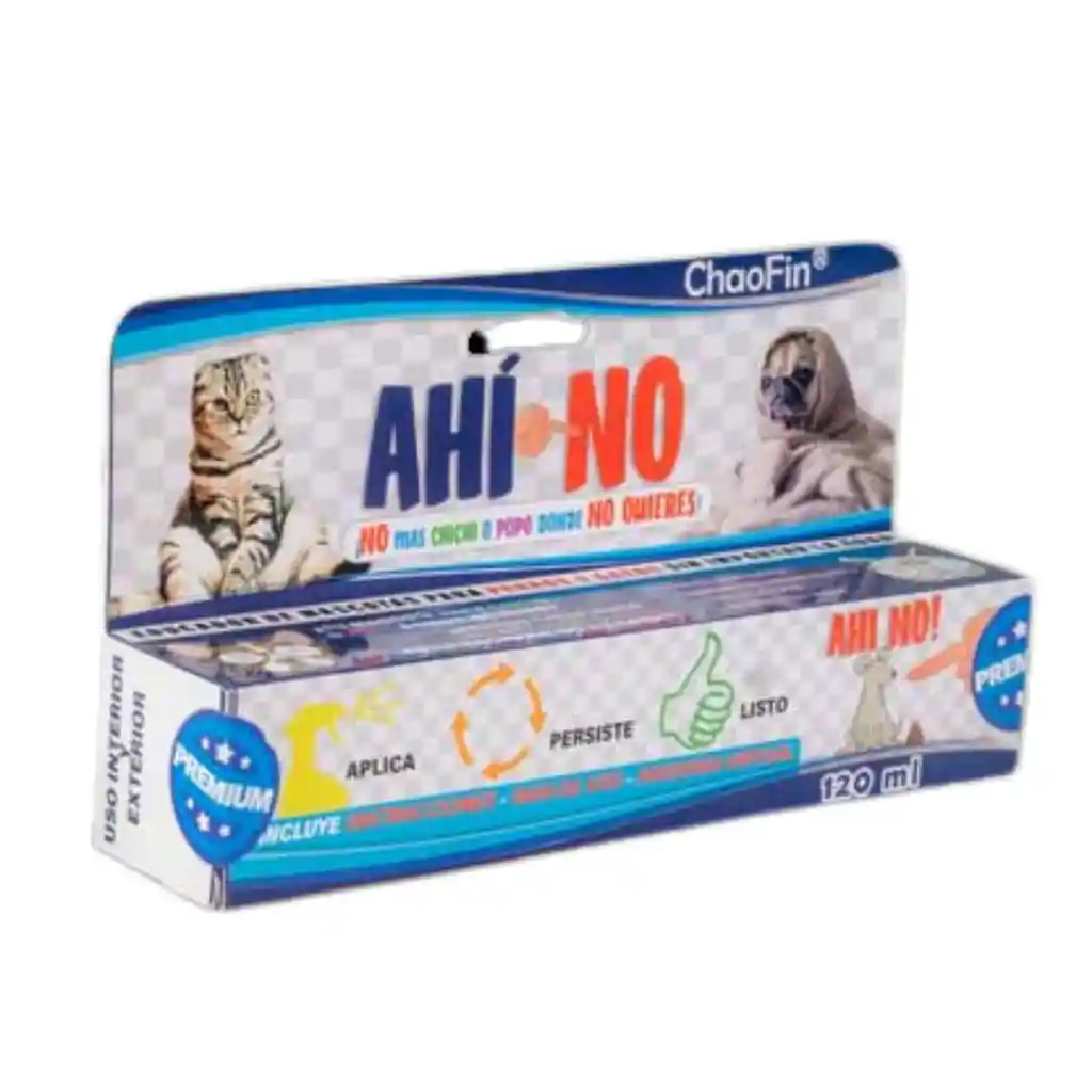 El repelente "¡Ahí No!" Es un producto diseñado para ayudar a corregir las evacuaciones inapropiadas de perros en interiores. Se aplica en las áreas donde el perro ha marcado y en un área amplia alrededor