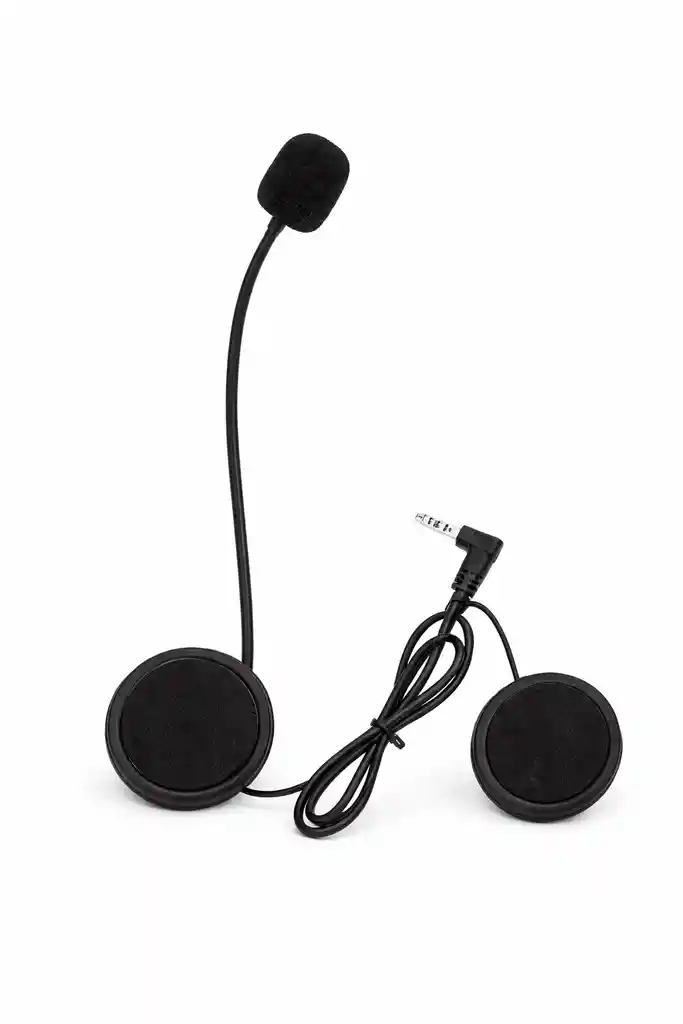 Material: Fabricado carcasa plástica, micrófono con espuma aislante de ruido y parlantes con Ajuste por conexión directa al intercomunicador mediante plug 3.5 mm. Los parlantes se fijan al interior del casco mediante velcro o adhesivo