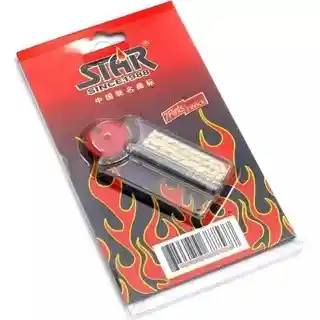 Paquete de mechas y Piedras para encendedor Star. Estas son Piedras de pedernal de primera calidad; Son piedras estándar de 4 mm de largo que se adaptan a todas las marcas principales de encendedores. Hay 7 piedras en un paquete que tiene un dispensador de fácil apertura para que solo obtenga 1 pedernal a la vez, también hay una mecha con las piedras para que también pueda reemplazar la mecha vieja en su encendedor de líquido.