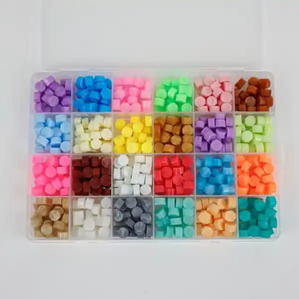Paquete de Lacre x24 colores Forma: Pastillas Cantidad aprox. por color: 10-12 unidades