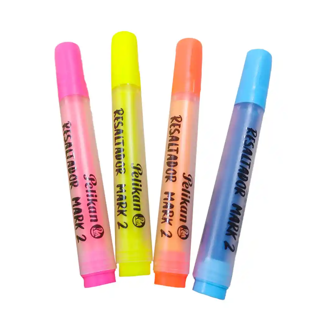 Resaltador Fluorescente Pelikan mark 2 X 4 Und Ideales para llevar en orden tus notas Resaltadores de alta calidad Para resaltar textos en papel bond, y copias Colores Fluorescente: Amarillo, Azul, Rosado, Naranja Tinta de excelente flujo y rendimiento Para uso escolar y de oficina Punta biselada Secado rápido, escritura suave. No tóxico.