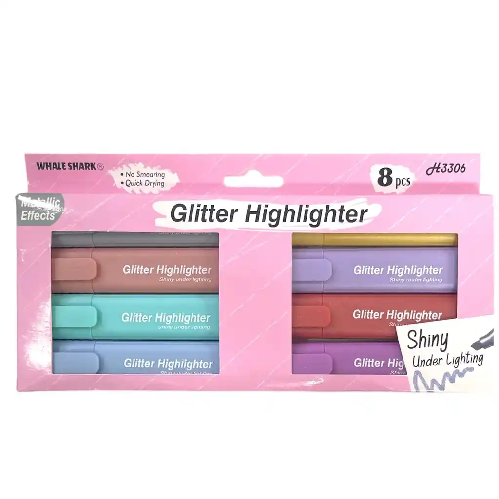 ¡Destaca en grande con nuestros resaltadores metalizados! Disponible en 8 colores vibrantes, añade un toque único a tus notas y resaltados. ¡Da un brillo especial a tus palabras con estos resaltadores únicos!