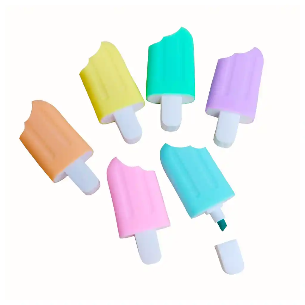 Resaltadores X 6 Unds en tono pastel, con diseño de Paletas Puntas biseladas Presentación en bolsa resellable transparente Fáciles de cargar, los puedes llevar a todas partes Ideales para uso en el estudio y en la oficina Diseños exclusivos y ergonómicos, resaltar cosas importantes y frases en tus libros preferidos y agendas. No tóxica. Excelente calidad