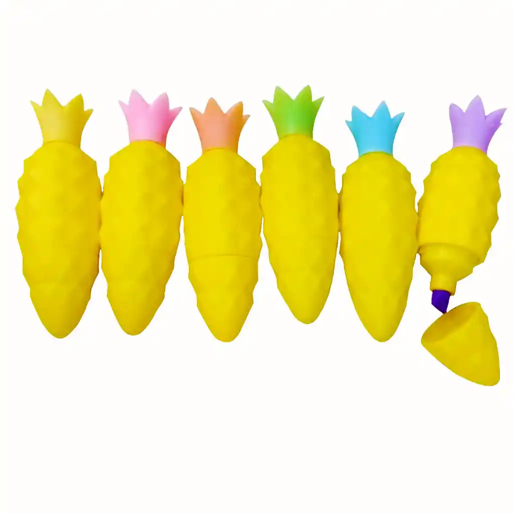 Resaltadores, Estuche X 6 Unds Con Diseño De Piñas Puntas biseladas Presentación en caja plástico transparente Fáciles de cargar, los puedes llevar a todas partes Ideales para uso en el estudio y en la oficina Diseños exclusivos y ergonómicos, resaltar cosas importantes y frases en tus libros preferidos y agendas. No tóxica. Excelente calidad