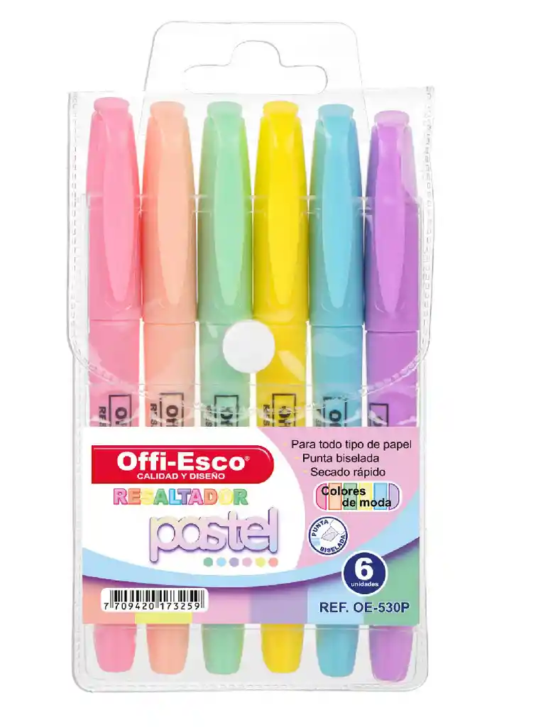 RESALTADOR PASTEL OFFI ESCO X 6 COLORES SURTDOS OE-530P EAN 7709420173259