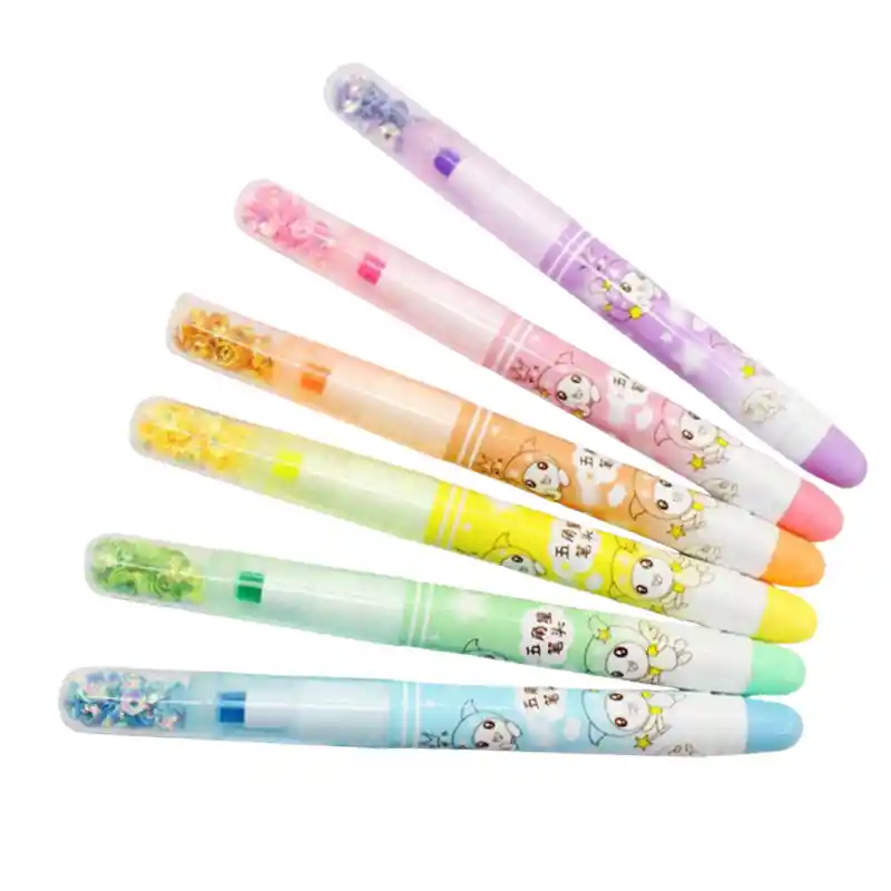 Resaltadores creativos con punta en forma de estrella, ideales para marcar textos, decorar apuntes y dar un toque divertido a cuadernos, agendas y planners. Tinta de colores vivos y suaves, escritura fluida y diseño atractivo, perfectos para estudiantes, niños y amantes de la papelería creativa. Puedes recibir cualquiera de los 6 colores diferentes.
