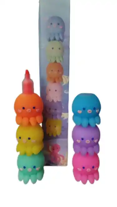 Somos Smart Center Tecnopaper lapiz de resaltadores en forma de pulpito con 5 colores (morado,azul, verde, rosado,naranja y amarillo) un solo lapiz adorable para resaltar tus nota importantes.