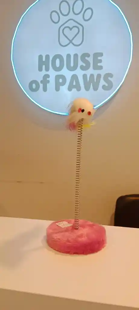 juguete resorte con ratón, el ratón se moverá de lado a lado y brindara mas tiempo de diversion al minino.