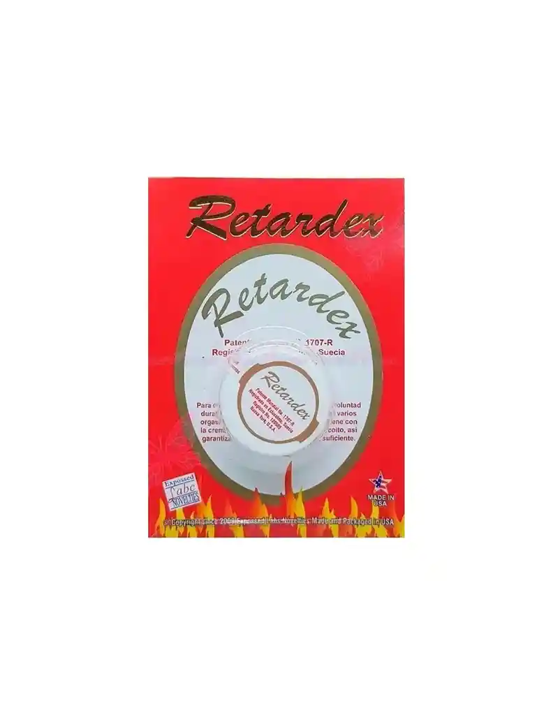 Retardante Retardex La crema retardante te ayudara a que tus relaciones sexuales se prolonguen un poco mas, hace que tus erecciones sean mas fuertes y duraderas. Es muy practica de cargar ya que viene en un estuche portátil, una de las ventajas es que después del orgasmo mantiene la erección. Te garantizamos que si es efectiva y así lo respalda nuestros clientes en todo Colombia que han usado el producto. No tiene ningún efecto secundario pues sus componentes son del 93% naturales, que hacen que la crema retardante sea un producto seguro y que no cause ninguna alergia o reacción en el usuario. Medidas: Crema 5 Ml Textura: Crema sin olor, sin sabor. Modo de Uso: Aplicar en el glande del pene 15 minutos antes de la relación. Esperar a que se absorba y luego limpiar para no pasar el efecto a la persona penetrada (si usas preservativo no es necesario limpiar)