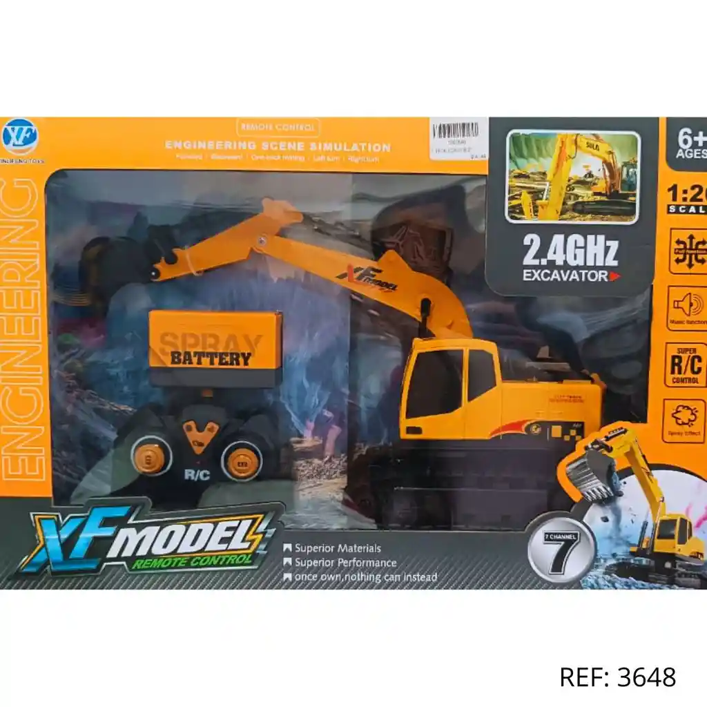 Hermosa y divertida retroexcavadora con control remoto, ideal para que tu hijo se divierta mientras explora el mundo de la construcción.