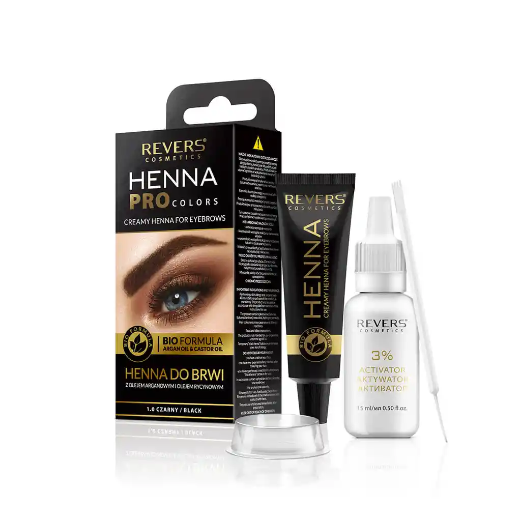 HENNA PRO COLORS es muy eficiente, cómodo y fácil de usar. Los efectos de una sola coloración duran hasta tres semanas. La henna tonifica el color, oscurece y cubre las canas y las manchas sin pelo de manera eficaz. La composición del cosmético se ha enriquecido con aceites de argán y ricino que nutren y fortalecen el cabello y previenen su caída. Con HENNA PRO COLORS, sus cejas adquirirán una forma clara y serán más fáciles de arreglar. Puedes oscurecer el marco de tus ojos en solo 10 minutos. Recuerda que cuanto más tiempo permanezca la henna en las cejas, más oscuro obtendrás. Nueva calidad de coloración de cejas. •Efecto profesional •Efecto rápido, visible después de 10 minutos. •Alta eficiencia, hasta 15 aplicaciones. •El color dura más de 2 semanas. El kit incluye: •Tubo con crema colorante 15 ml. •Botella con activador al 3% 15 ml. •Espátula aplicadora con peine •Bol o cuenco para el tinte