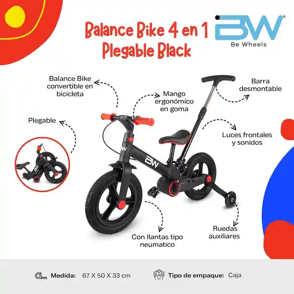 -Balance Bike Convertible en Bicicleta, Con Barra Guiadora Desmontable, Ruedas Auxiliares y es Plegable - Con Llantas Tipo Neumático - Estructura Ligera y Deportiva - Con Asiento Ergonómico Ajustable en Altura - Fácil de Armar e Intercambiar Entre Sus Diferentes Modos - Desarrolla la Motricidad y el Equilibrio - Mango Ergonómico en Goma - Dimensiones 67 x 50 x 33 cm.