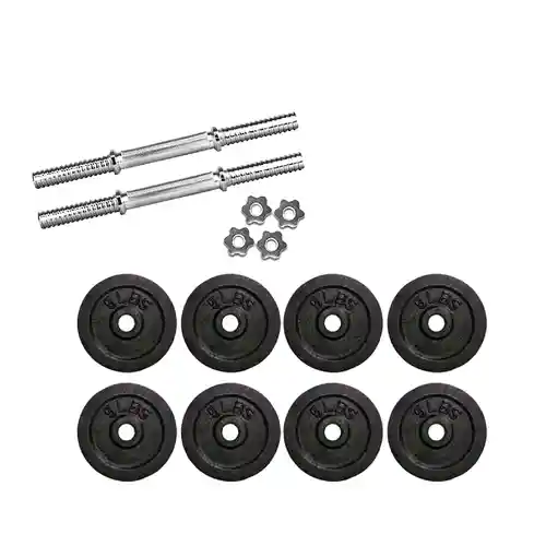 El Kit Incluye: 2 Barras de Mancuernas Cromadas Para Mayor Agarre. 4 Seguros de Rosca 8 Discos de 5 Lbs de Peso C/U Peso Total Del Kit 20 Kilos
