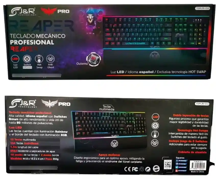Switches BROWN Outmenu Hot Swap Doble inyeccion Anti-Ghost Diseño hergonomico con apoya muñecas cubierta en aluminio 10 modos de luz en las teclas y 4 modulos de luz en el borde teclas multimedia cubierta en aluminio INCLUYE JUEGO DE 5 SWITCHES