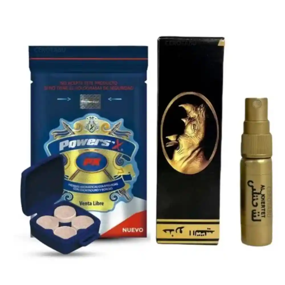 ===ll ENVIOS 100% DISCRETOS ll=== EL KIT IDEAL PARA UNA NOCHE INOLVIDABLE Retardante Rhino Dorado: Un retardante es una de las medidas más eficaces para afrontar a corto plazo la eyaculación preco, permiten incrementar considerablemente la duración y el desempeño sexual, para poder disfrutar de unas mejores y más placenteras relaciones sexuales y dejar de lado el temor a acabar antes de tiempo. Por lo que no solo se podrá ayudar a mejorar las relaciones sexuales, sino que ayudará a conseguir mucha más confianza y autoestima. MODO DE USO: Aplicar en el glande (cabeza del pene) de 10 a 15 minutos antes del encuentro sexual, una vez pase el tiempo sugerido se recomienda lavar con poca agua para evitar pegar el efecto a la pareja. DISFRUTALO Potenciador Power X: es un potencializador natural, ayuda a tener erecciones mas fuertes y duraderas. El uso de un buen retardante y un potencializador a la par garantiza una noche inolvidable. 100% natural con registro invima siendo asi uno de los mejores potenciadores del mercado sin efectos secundarios. Antes de tomar la decisión de usar potenciadores cargados de quimicos, prueba con power x. FORMULA MEJORADA PARA HOMBRES Y MUJERES MODO DE USO: El sachet contiene 4 pastillas, solo debes ingerir 1 de 20 a 30 minutos antes del encuentro sexual, evita tomarla con cítricos o lácteos ya que estos pueden reducir su efecto, se puede tomar con alcohol sin problema, no tiene efectos secundarios, es 100% natural. SE ENTREGA: 1 Rhino dorado + 1 sachet x4 pastillas de Power X. GRACIAS POR TU COMPRA.