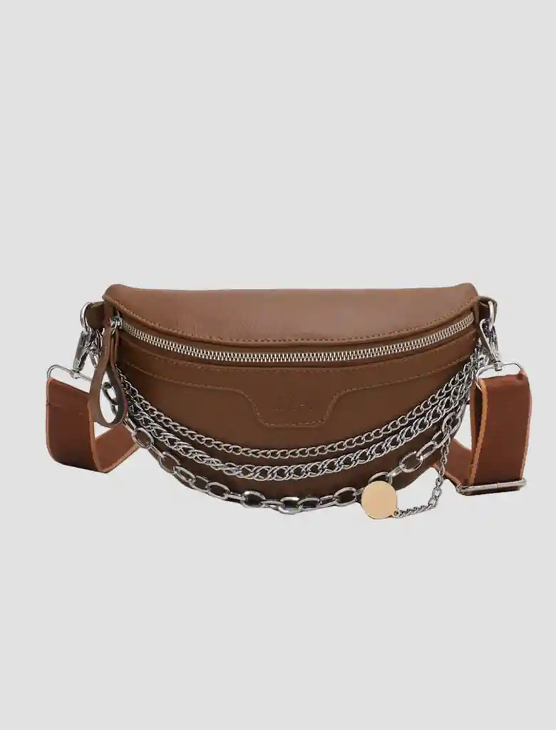Esta hermosa riñonera es el accesorio perfecto para cualquier tipo de oacasion, ademas de su color tan versatil cuenta con detalles como cadenas que haran resaltar su belleza y una correra graduable para que la uses como desees.