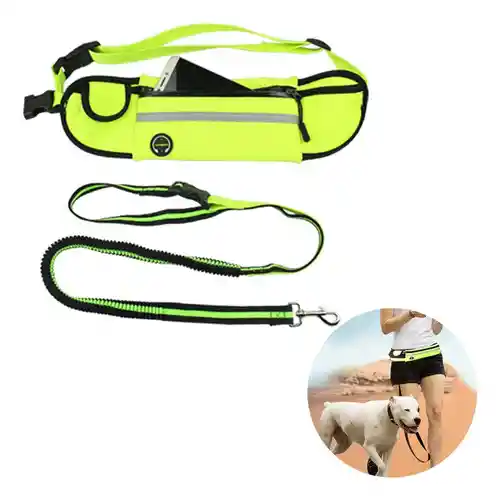 Riñonera para aquellos que disfrutan salir a trotar con sus perros, incluye un lazo elástico para que tu amigo fiel siempre te acompañe
