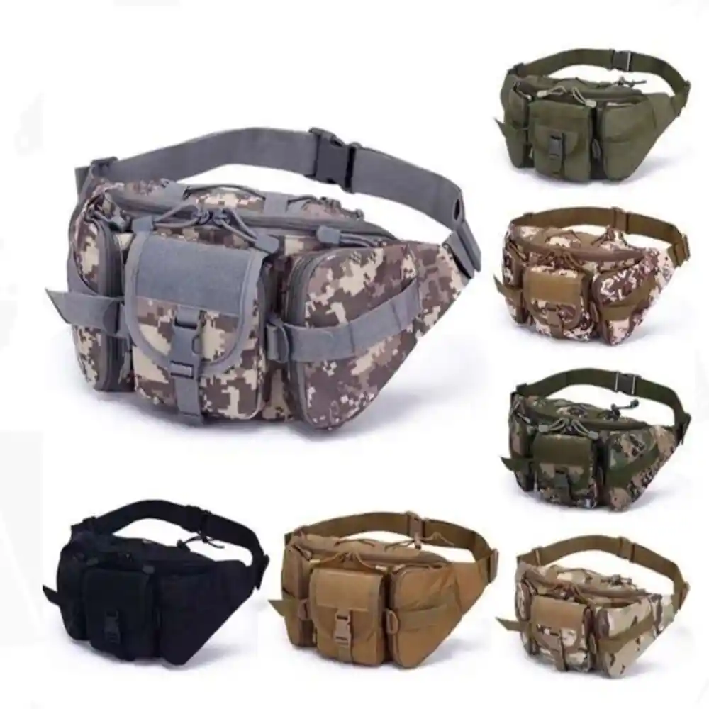 NOTA: ESPECIFICAR COLOR AL MOMENTO DEL PEDIDO, DE LO CONTRARIO SE ENVIARÁ EN COLOR ALEATORIO (COLORES SUJETOS A DISPONIBILIDAD DEL MOMENTO) Material duradero: la riñonera táctica está hecha de poliéster 1000D de alta calidad, cremalleras suaves y correas ajustables, que es resistente al agua, duradera y antiabrasión, garantiza un uso duradero. ★ Múltiples bolsillos - Tamaño: 14.6 pulgadas de largo x 6.7 pulgadas de alto x 3.9 pulgadas de ancho. La riñonera militar tiene 4 bolsillos separados con cremallera. El compartimento principal con un bolsillo interno abierto es lo suficientemente grande para llevar tu teléfono, linterna, cigarrillos, aperitivos, paraguas, etc. El bolsillo oculto con cremallera - en la parte posterior es ideal para mantener tus objetos de valor lejos de los ladrones. Dos bolsillos delanteros se pueden utilizar para guardar tus dispositivos, piezas pequeñas. ★Correa ajustable: la riñonera es una correa flexible, con hebilla fuerte y fiable, varía de 26 a 59 pulgadas (incluyendo la bolsa). Se ajusta fácil y rápidamente a cualquier longitud que necesites y permanecerá a la longitud elegida sin aflojarse. También tiene 2 bandas elásticas para sujetar el exceso de cinturón. SISTEMA MOLLE: Expansión externa Sistema MOLLE en ambos lados y en la parte posterior que está diseñado para ser utilizado en combinación con otros equipos que hace que la bolsa pueda cargar más engranajes. Las correas MOLLE duraderas te permiten colocar una pequeña bolsa, accesorios de bolsa, hervidor, etc. puede ampliar la capacidad para acomodar más artículos. Capa intermedia superior con cuerda elástica que puedes fijar y asegurar el bolígrafo, linterna táctica y otros objetos pequeños. ★ Amplio uso: hay muchas maneras de llevar esta cangurera. Puedes usarla delante de tu cintura (mochila), espalda en tu cadera (cadera), inclinada sobre tu pecho (bolsa cruzada) o sobre tu hombro (bolsa de hombro). Ideal para correr, viajar, cazar, deportes y otras actividades al aire libre.