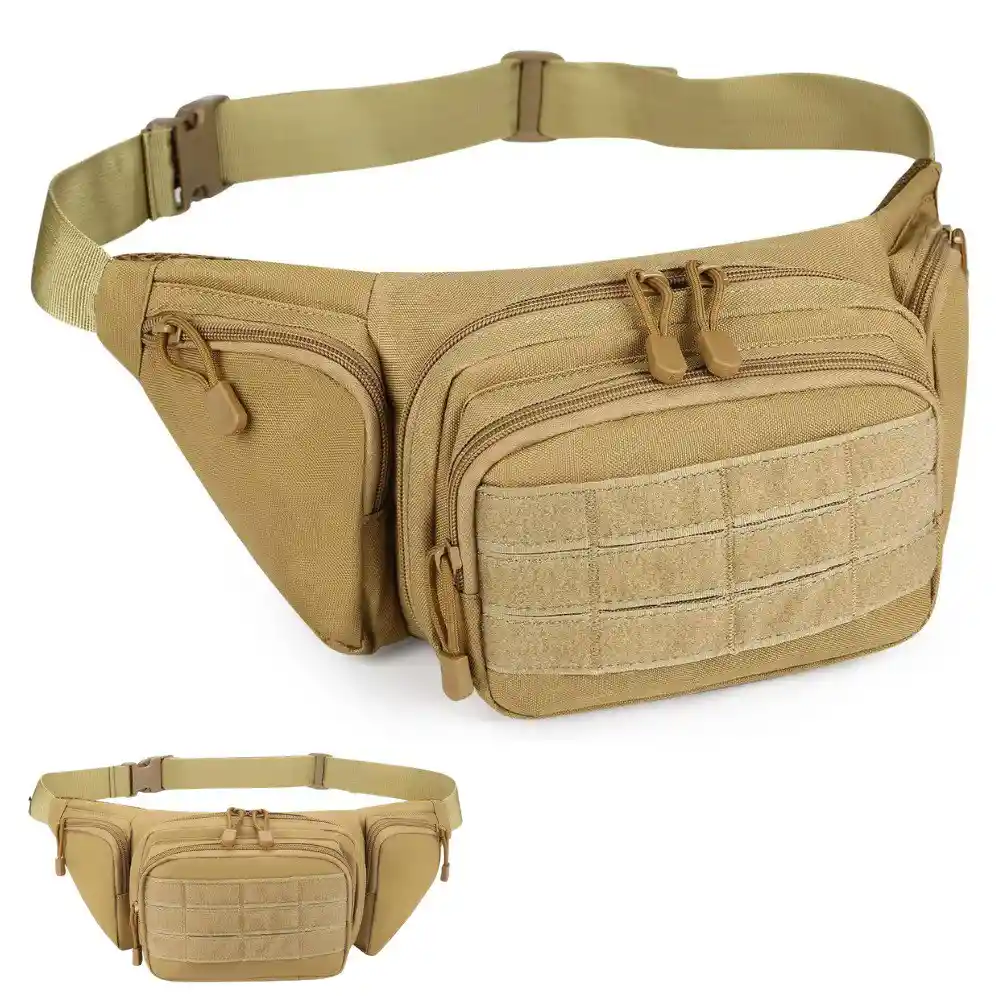 COLORES DISPONIBLES: Marrón Claro Esta riñonera se caracteriza por su estilo táctico y funcional, con múltiples bolsillos y compartimentos que permiten llevar herramientas y equipos para actividades al aire libre como pesca, senderismo, camping o caza, ofreciendo una excelente opción para quienes disfrutan de las aventuras en la naturaleza. Características: - Diseño ergonómico y práctico: Se ajusta cómodamente a la cadera con un cinturón que asegura estabilidad durante el movimiento, ideal para largas caminatas - Material resistente: Fabricada con materiales de alta calidad que garantizan durabilidad y resistencia al agua, la humedad y el desgaste por uso frecuente. - Bolsillos múltiples: Viene equipada con varios compartimentos con cierres y bolsillos de diferentes tamaños para almacenar elementos como anzuelos, señuelos, cuchillos, linternas, o incluso tu teléfono móvil. - Ajustabilidad y comodidad: Su cinturón es completamente ajustable, permitiendo que la riñonera se adapte.