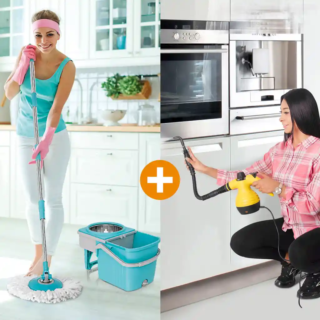 Este Combo Contiene: -1 Limpiadora a Vapor Presurizado Multiusos Steam Cleaner Energy Plus. -1 Trapero Giratorio 360 Stainless Mop Energy Plus -Incluye 2 Mopas. Limpiadora a Vapor Presurizado Multiusos Steam Cleaner Energy Plus. Limpiar, Desinfectar y Desengrasar en Seco Toda la Casa, el Auto y la Ropa Será Mucho Más Fácil Que Nunca Antes. Podrás Remover Eficientemente la Tierra y Las Bacterias Que no se Pueden Ver. Trapero Giratorio 360 Stainless Mop Energy Plus - Incluye 2 Mopas. Realiza Una Limpieza Profunda Para tu Hogar Enjuagando y Secando Sin Necesidad de Usar Tus Manos Con el Trapero Giratorio 360 Stainless Mop Energy Plus. Limpia Más Rápido, Absorbiendo Más Humedad Que Los Trapeadores Tradicionales. Posee un Sistema Único de Limpieza Por su Innovadora Característica Rotatoria de 360º Que Permite Llegar a Lugares Difíciles de Alcanzar Como Debajo de Los Muebles o de Los Estantes.