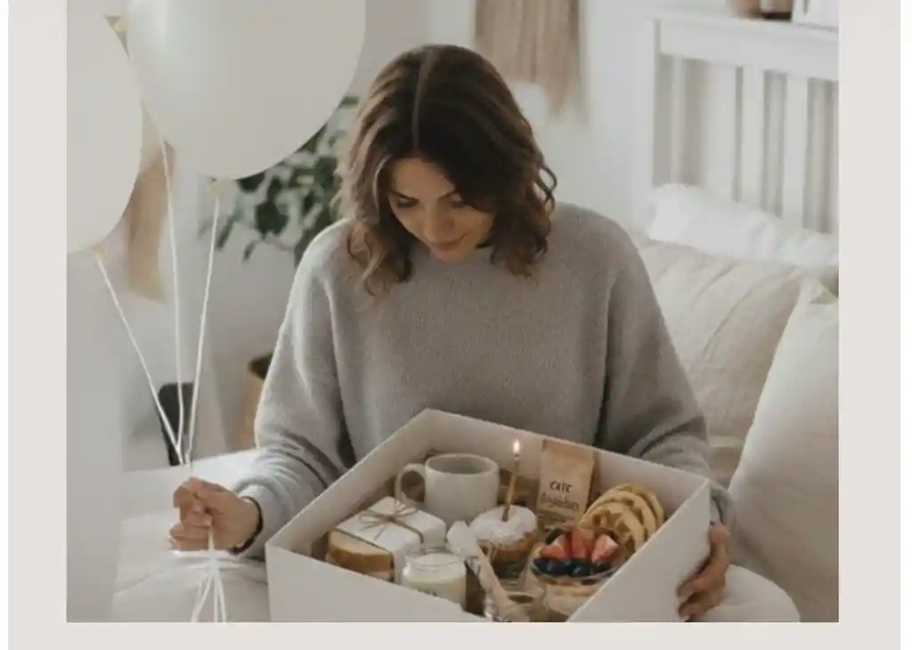 Una ceremonia al depertar para comenzar el dia con intencion: inlcuye: pocillo artesanal cafe de autor te hatsu, jugo natural o mini botella de vino mini wafles Sandwiche artesanal canasta de snacks: palito de queso tostadas y galletas mini torta con velita velita lume atelier con esencia tarjeta pergamino 2 globos
