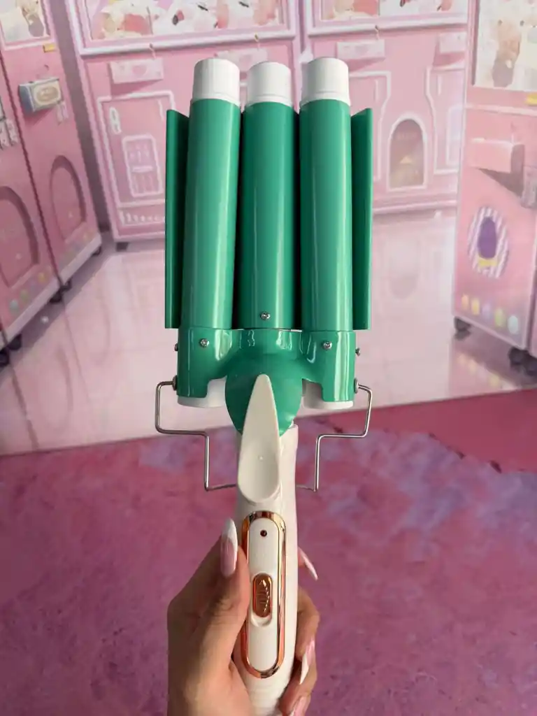¡Consigue las ondas de sirena perfectas con nuestra rizadora de 3 tubos! Con un diseño en elegante dorado y verde, esta rizadora calienta hasta 210°C para darte resultados rápidos y duraderos. Ideal para crear ese look de ondas suaves y definidas que tanto amas. ¡Dale a tu cabello un estilo de ensueño con facilidad!