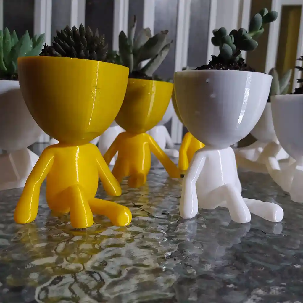Maceta Robert Fresco para plantas pequeñas como cactus y suculentas ( SIN PLANTA) Color: Blanca Medidas Cabeza Diámetro : 3 cm Ancho y Largo : 6cm alto : 7cm Medidas total de la maceta Alto : 12 cm Ancho: 7cm largo : 8cm