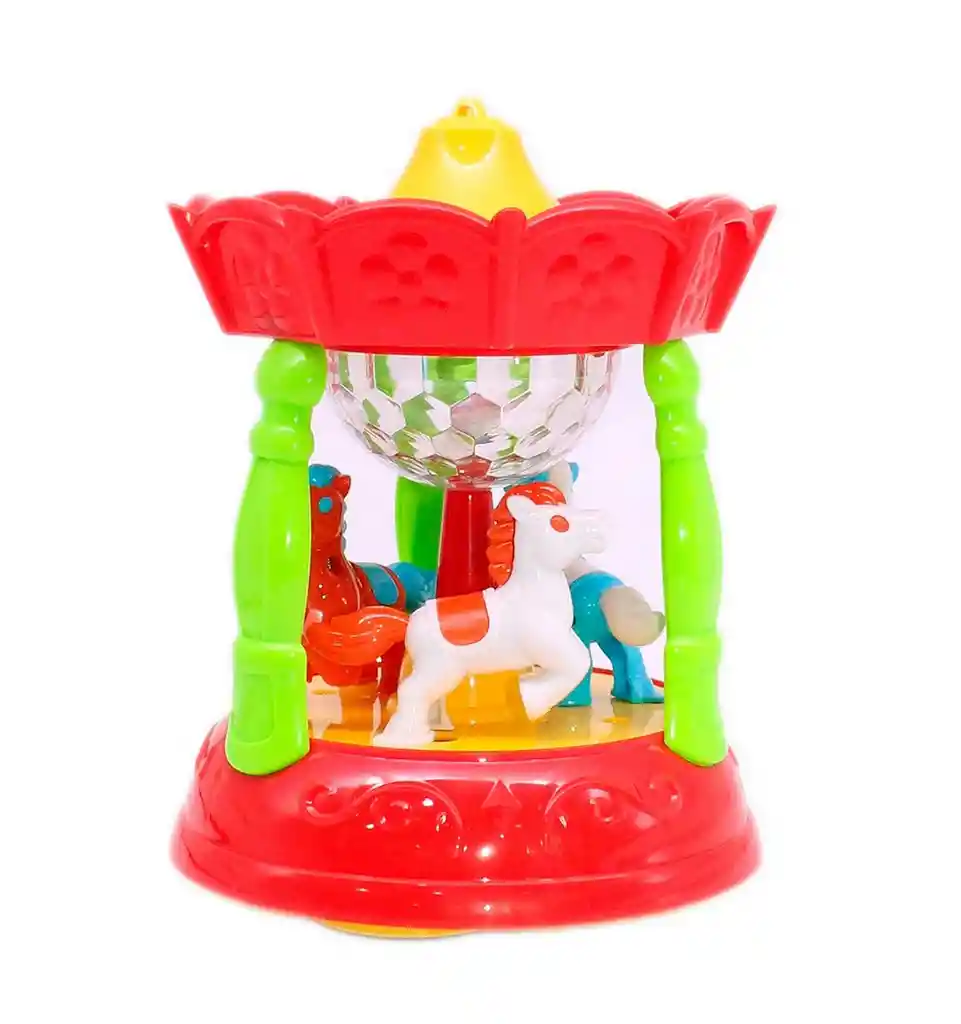 Este carrusel de caballos es un juguete mágico que combina luces brillantes, sonidos encantadores y movimientos suaves para recrear la experiencia clásica de un carrusel en miniatura. Cada caballito se mueve al ritmo de la música, creando una atmósfera de diversión y fantasía que cautiva a los niños y les brinda horas de entretenimiento mientras se sumergen en su propio mundo de juego imaginativo. //// El juguete incluye Baterías /// Ficha Técnica: Dimensiones: 19 cm x 14 cm x 14 cm Material : Plástico ABS no toxico Edad recomendada: + 3 años Tipo de Batería: AA Certificado de conformidad: CS-LCO-13233-2021S2/432 Referencia: HG-595 Términos de Garantía: Para defectos de fábrica o retractos: Por favor revise el producto apenas lo reciba y antes de usarlo. No aplican ley de retracto o defectos de fábrica luego de usar el producto. Se manejan máximo 5 días para reportar defectos de fábrica (por ejemplo, producto funciona mal, piezas faltantes, rotas, etc). Para hacer efectiva la devolución el producto debe devolverse con el empaque original, el cual debe estar en buen estado, incluir todos los documentos y las partes completas y sin daños.